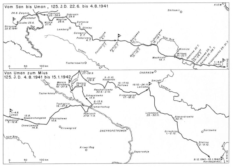 Der Vormarsch der Division und somit der A.A. 125 ist anhand der Karten nachvollziehbar...