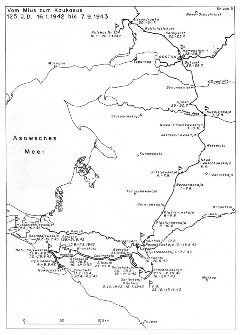 Vormarschweg der 125. Infanterie-Division bis zum 4.08.1942