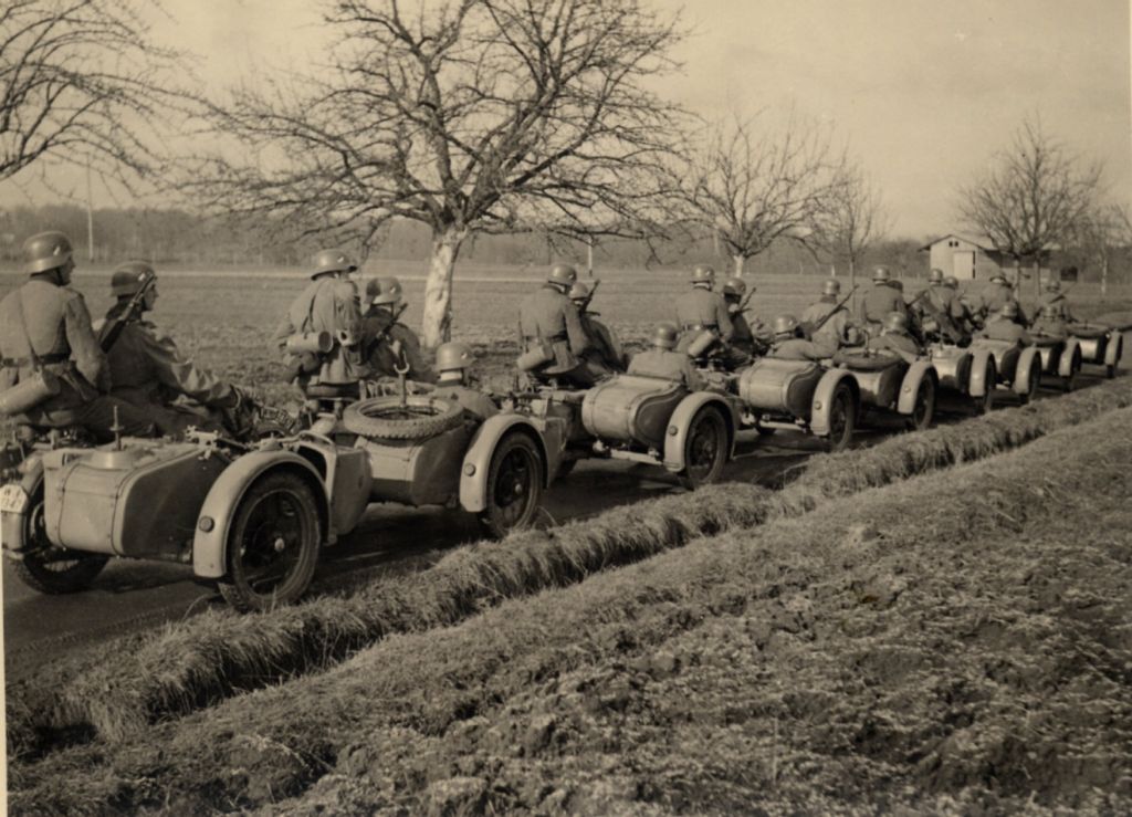 Die Kradstaffel der 2. (Radfahr-) Schwadron A.A. 125 - ausgestattet mit französischen Beute-Beiwagen-Krad