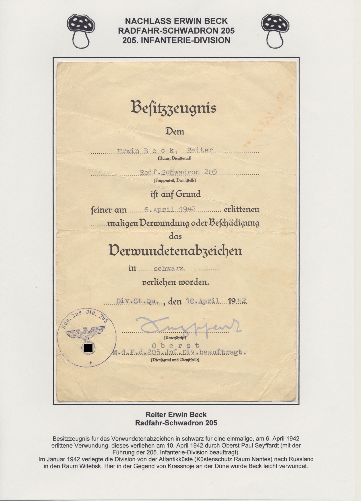 Beispiel einer Urkunde für einen Angehörigen der "Radfahr-Schwadron 205"