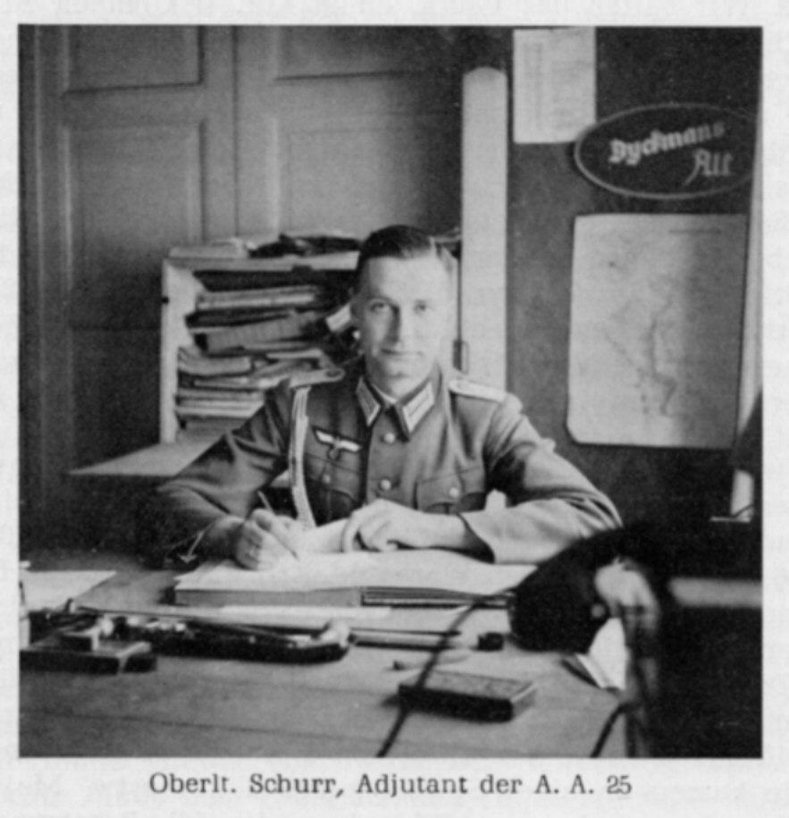 Lt. d. R. Schurr, der im Westfeldzug die Adjutanten-Stelle gewissenhaft, tapfer und sehr gut ausfüllte.