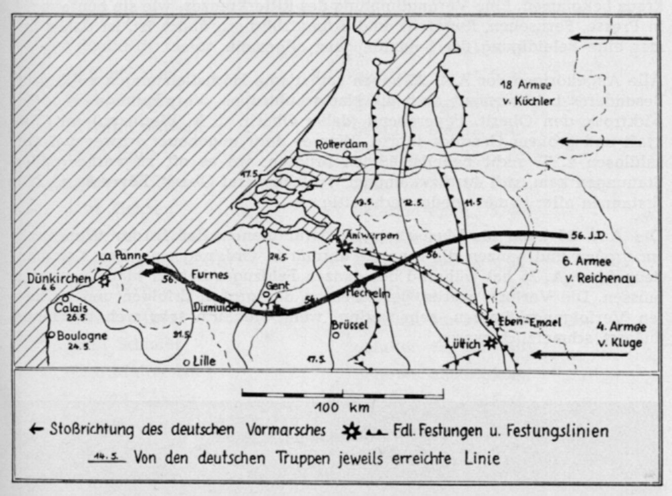 durch Belgien und Holland veranlasst. Die 56. Inf.Div. bildete wiederholt die Spitze des Keils" (General Kriebel).