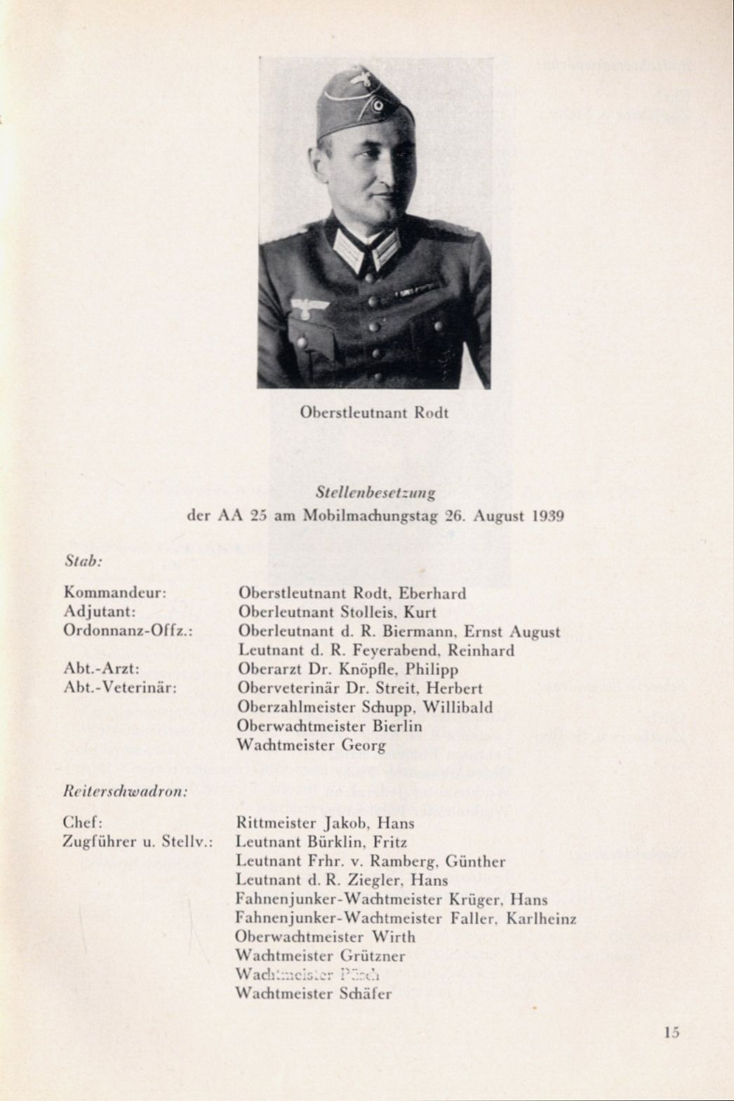 Kommandeur der A.A. 25, Obersleutnant Rodt, vorher Kommandeur der Reiterabteilung KR 18 am 1.09.1939 um 21 Uhr,