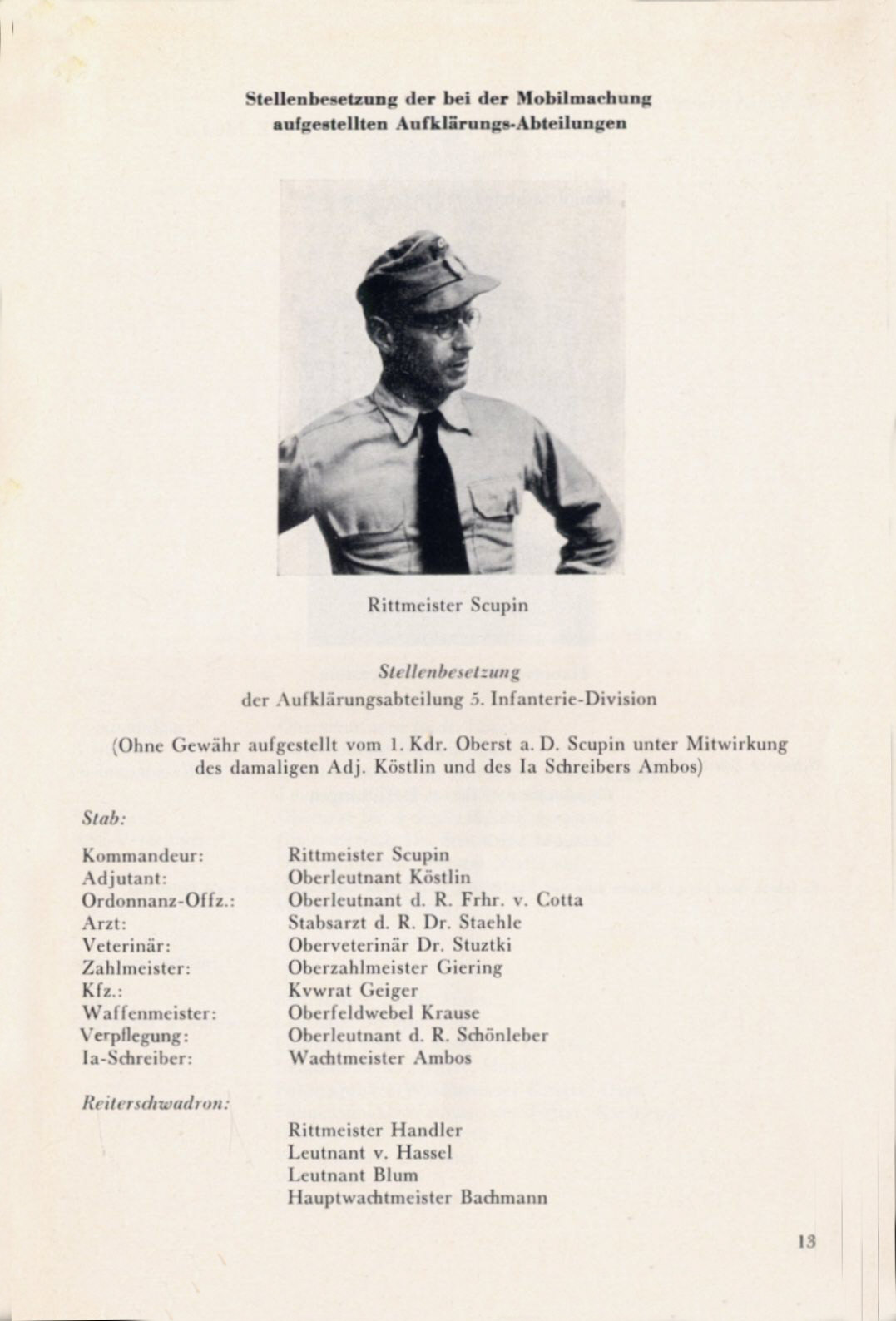nun zur 1. (Reiter-) Schwadron der Aufklärungs-Abteilung 5 und die 6. (Radfahr-) Schwadron KR 18 unter Rittmeister Scupin wurde nun 2. (Radfahr-) Schwadron