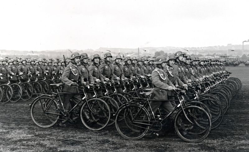 Radfahr-Schwadron bei der Parade auf dem Cannstatter Wasen am 20. April 1938