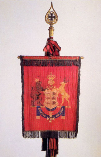 Standarte mit der Kriegsdenkmünze 1870/71 (gestiftet am 18. August 1895) ausgezeichnet (mit Spangen WÖRTH, STONNE, SEDAN, PARIS, VILLIERS (30.Novbr.1870), VILLIERS (2. Decbr. 1870)