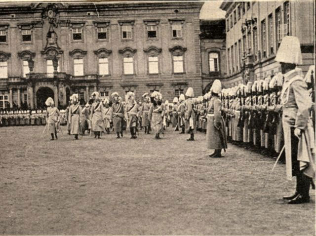 Schlossplatz in Ludwigsburg: Abschreiten der Front durch den Kaiser und den König